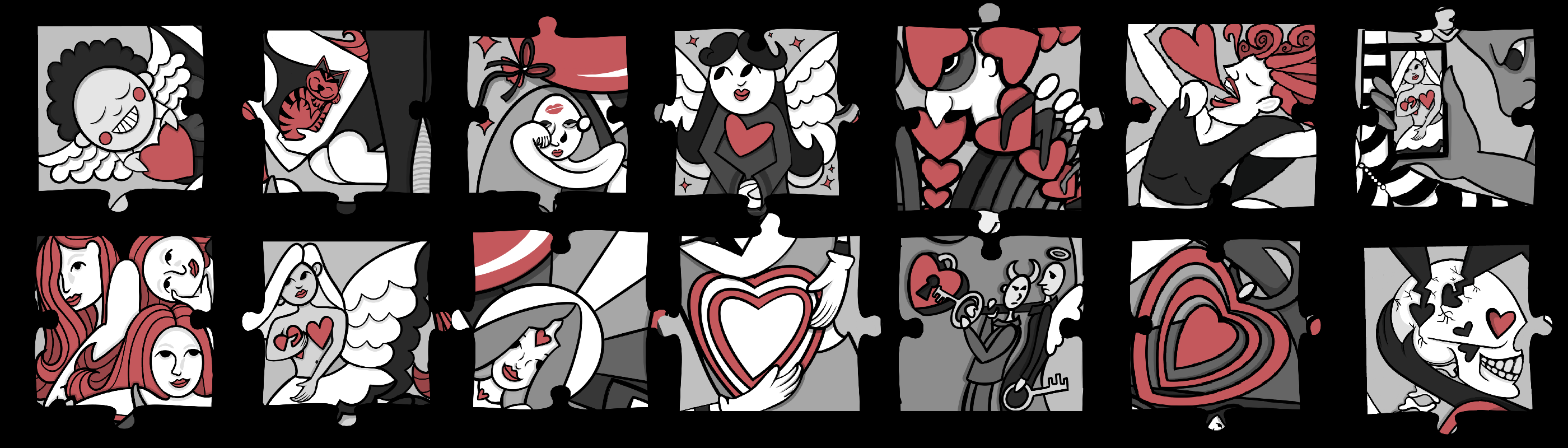 Each puzzle piece is part of my NFT collections Bloodmoon Ritual and Under Your Spell.